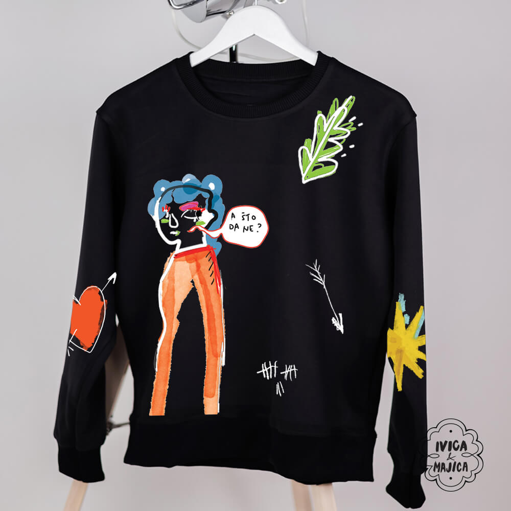 Ženski modeli se rade u veličinama od S do 2XL, osim oversize modela i crop topa koji se radi u jednoj univerzalnoj veličini. Muške modele izrađujemo u veličinama od S do 3XL. Dečiji bodići se rade u veličinama 62, 68, 74, 80, 86, 92, a dečije majice kratkih rukava i duksevi u veličinama 1, 2, 4, 6, 8, 10, 12, 14 (brojevi označavaju uzrast deteta).