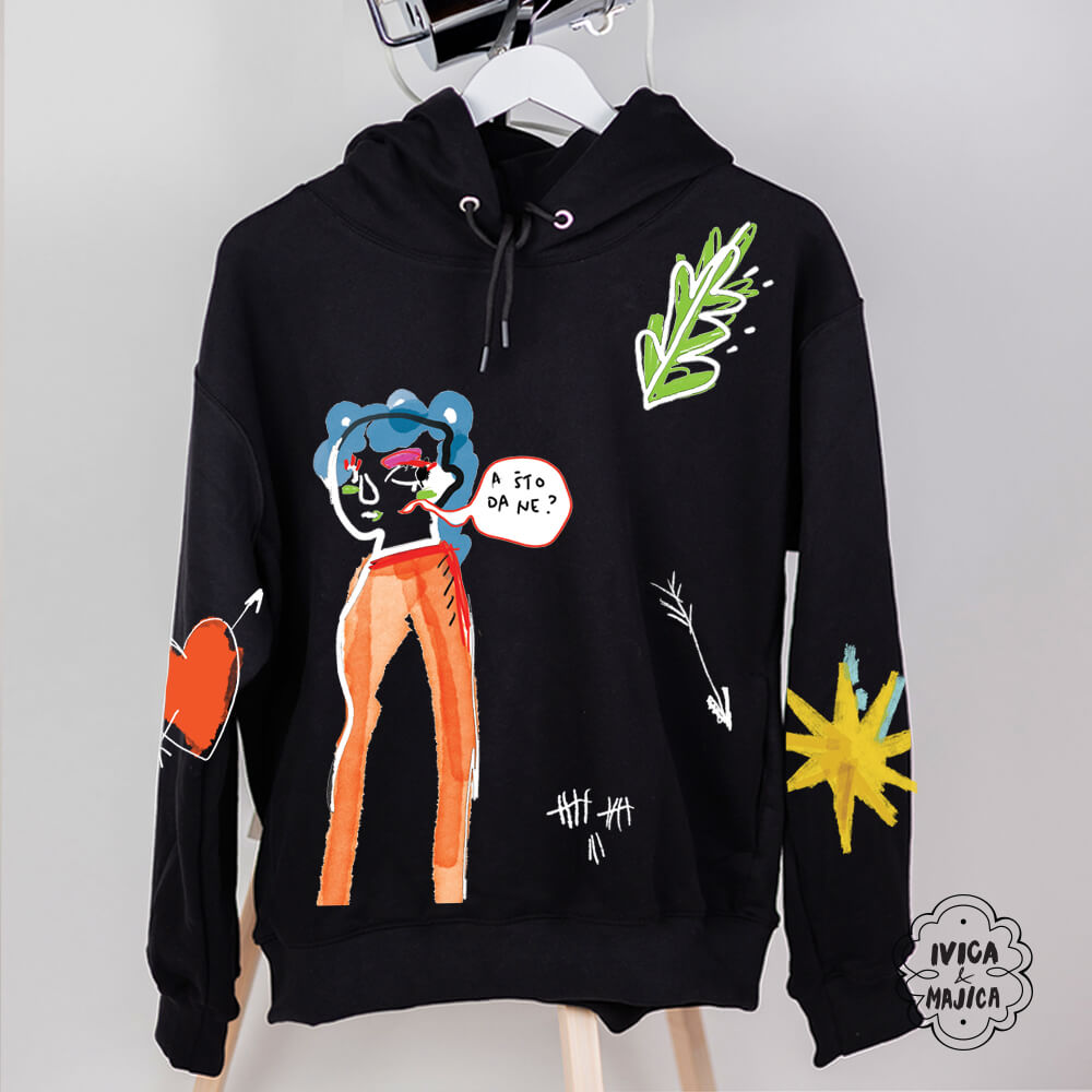Ženski modeli se rade u veličinama od S do 2XL, osim oversize modela i crop topa koji se radi u jednoj univerzalnoj veličini. Muške modele izrađujemo u veličinama od S do 3XL. Dečiji bodići se rade u veličinama 62, 68, 74, 80, 86, 92, a dečije majice kratkih rukava i duksevi u veličinama 1, 2, 4, 6, 8, 10, 12, 14 (brojevi označavaju uzrast deteta).