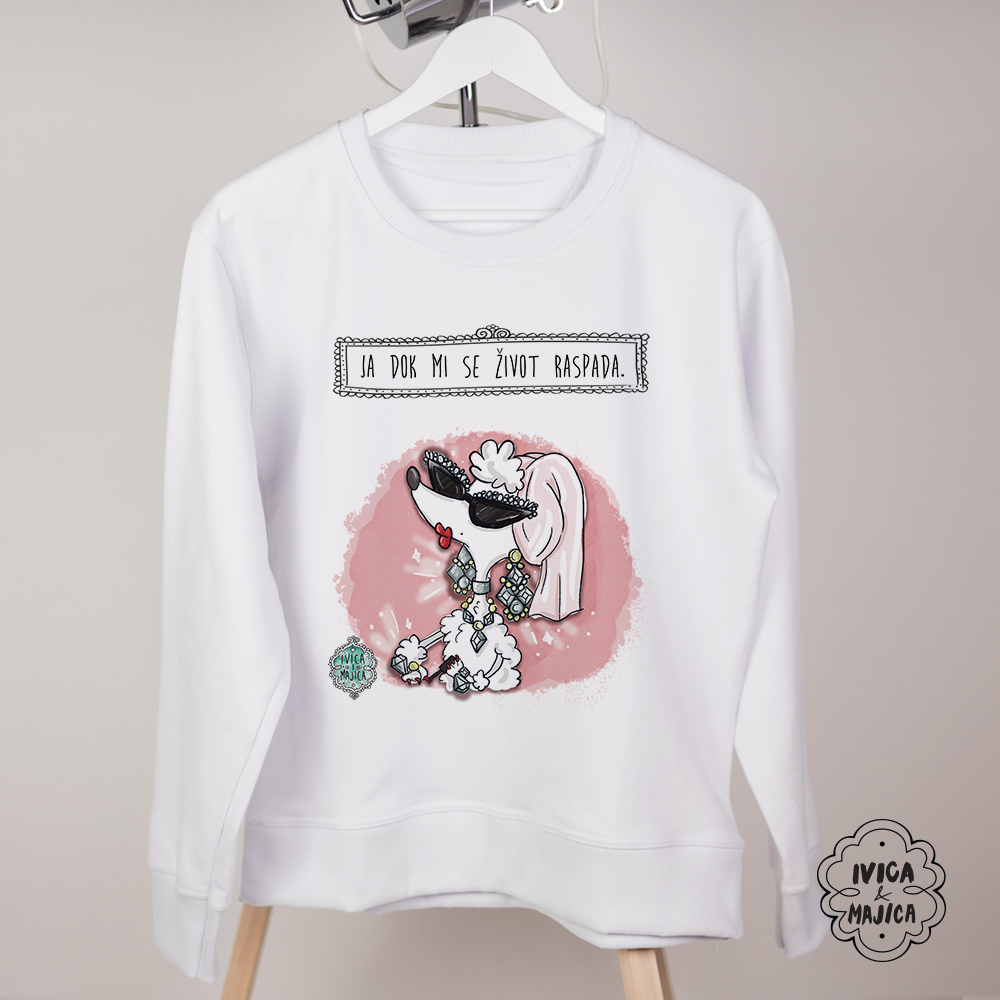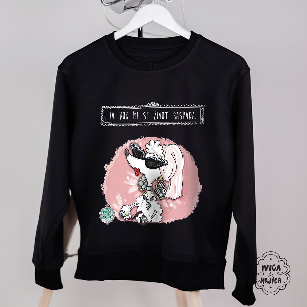 Ženski duks “Ja dok mi se život raspada” od mekanog pamuka donosi udobnost i prepoznatljiv humor. Za žene koje znaju da izgledaš najbolje baš kad sve ide naopako.