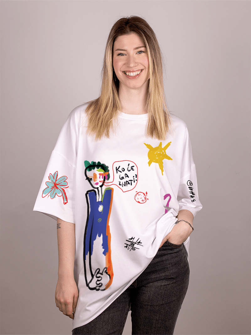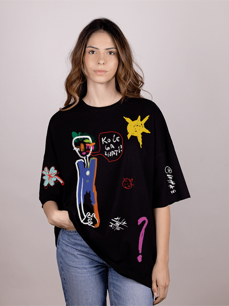 Oversize majica “Ko će ga znati” od mekanog pamuka donosi udobnost i dozu humora za svaki dan.