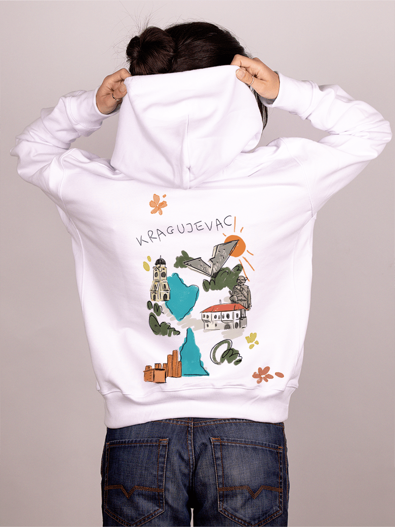 Ženski duks “Kragujevac” od mekanog pamuka pruža udobnost, kvalitet i duh grada u svakom šavu.