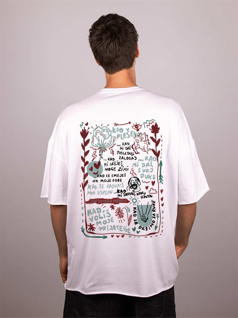Muška oversize majica “Ljubav je” od mekanog pamuka spaja udobnost, minimalizam i dobru poruku. Za muškarce koji veruju u ljubav, ali i u dobar stil.