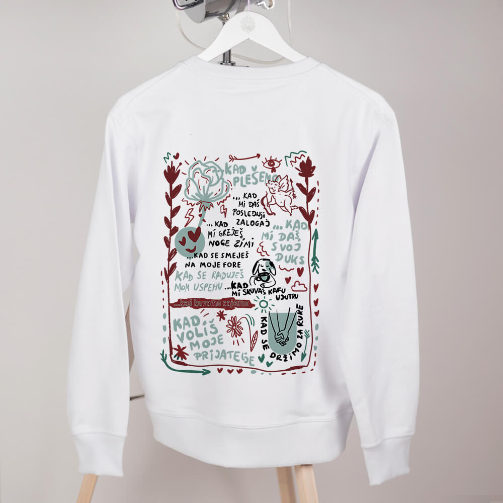 Ženski modeli se rade u veličinama od S do 2XL, osim oversize modela i crop topa koji se radi u jednoj univerzalnoj veličini. Muške modele izrađujemo u veličinama od S do 3XL. Dečiji bodići se rade u veličinama 62, 68, 74, 80, 86, 92, a dečije majice kratkih rukava i duksevi u veličinama 1, 2, 4, 6, 8, 10, 12, 14 (brojevi označavaju uzrast deteta).