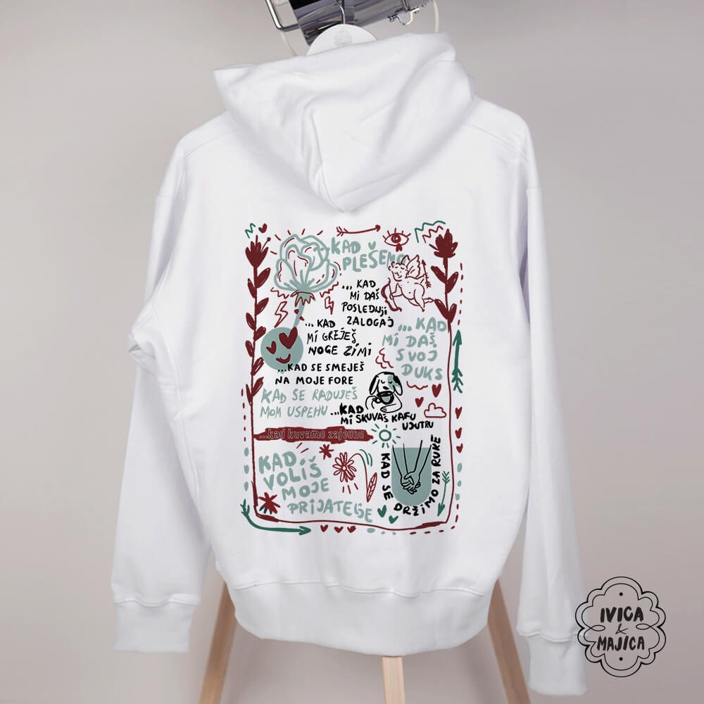 Ženski modeli se rade u veličinama od S do 2XL, osim oversize modela i crop topa koji se radi u jednoj univerzalnoj veličini. Muške modele izrađujemo u veličinama od S do 3XL. Dečiji bodići se rade u veličinama 62, 68, 74, 80, 86, 92, a dečije majice kratkih rukava i duksevi u veličinama 1, 2, 4, 6, 8, 10, 12, 14 (brojevi označavaju uzrast deteta).