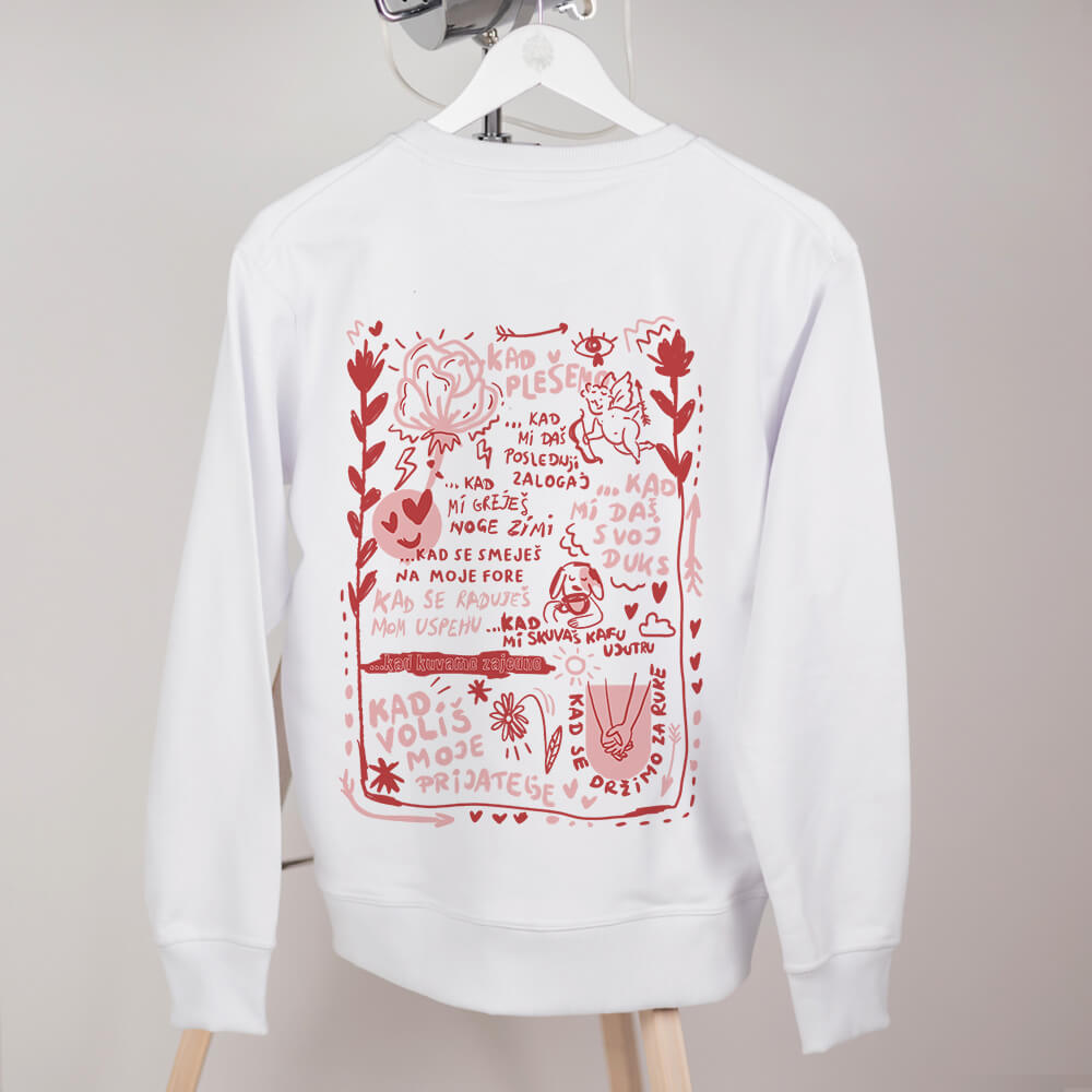 Ženski modeli se rade u veličinama od S do 2XL, osim oversize modela i crop topa koji se radi u jednoj univerzalnoj veličini. Muške modele izrađujemo u veličinama od S do 3XL. Dečiji bodići se rade u veličinama 62, 68, 74, 80, 86, 92, a dečije majice kratkih rukava i duksevi u veličinama 1, 2, 4, 6, 8, 10, 12, 14 (brojevi označavaju uzrast deteta).