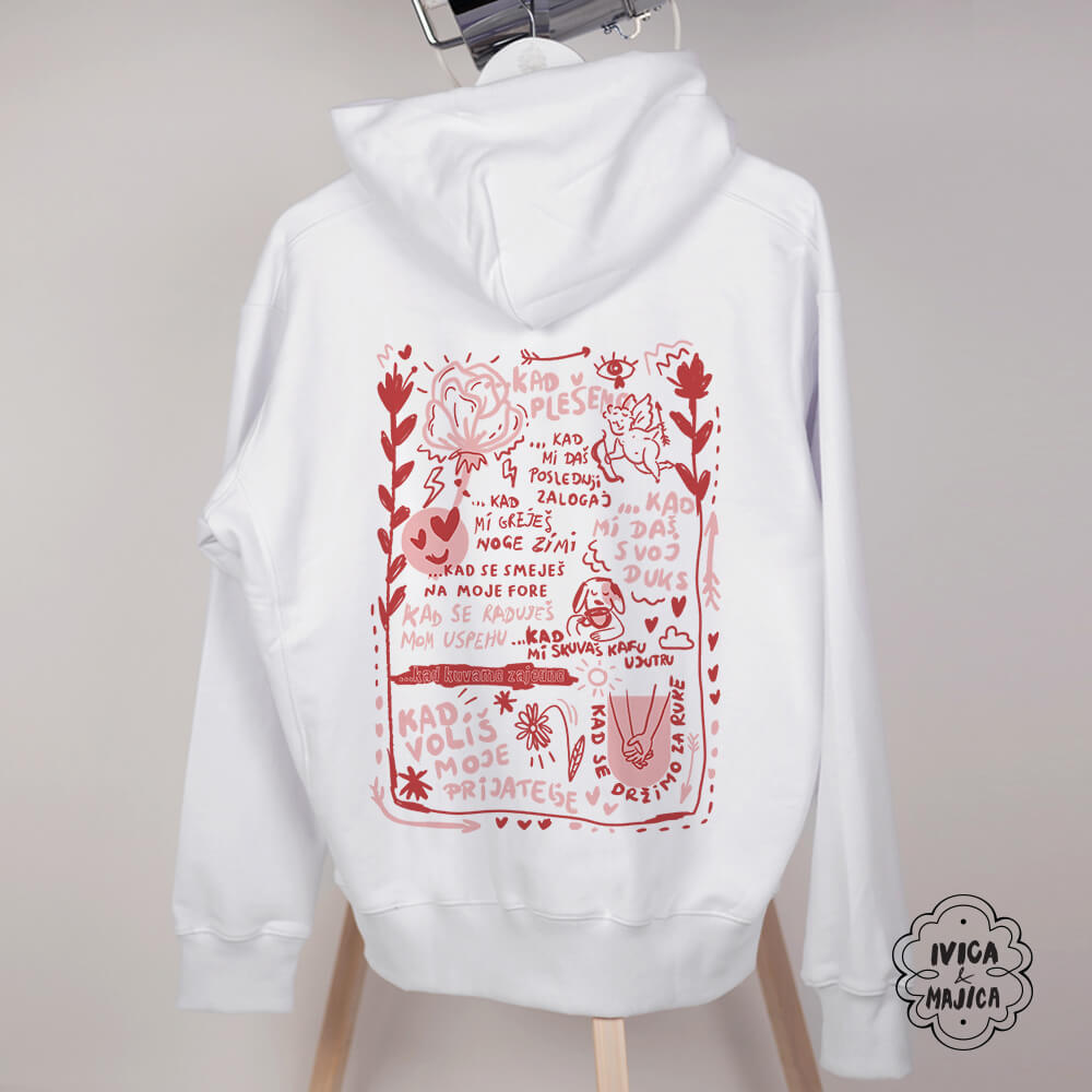 Ženski modeli se rade u veličinama od S do 2XL, osim oversize modela i crop topa koji se radi u jednoj univerzalnoj veličini. Muške modele izrađujemo u veličinama od S do 3XL. Dečiji bodići se rade u veličinama 62, 68, 74, 80, 86, 92, a dečije majice kratkih rukava i duksevi u veličinama 1, 2, 4, 6, 8, 10, 12, 14 (brojevi označavaju uzrast deteta).