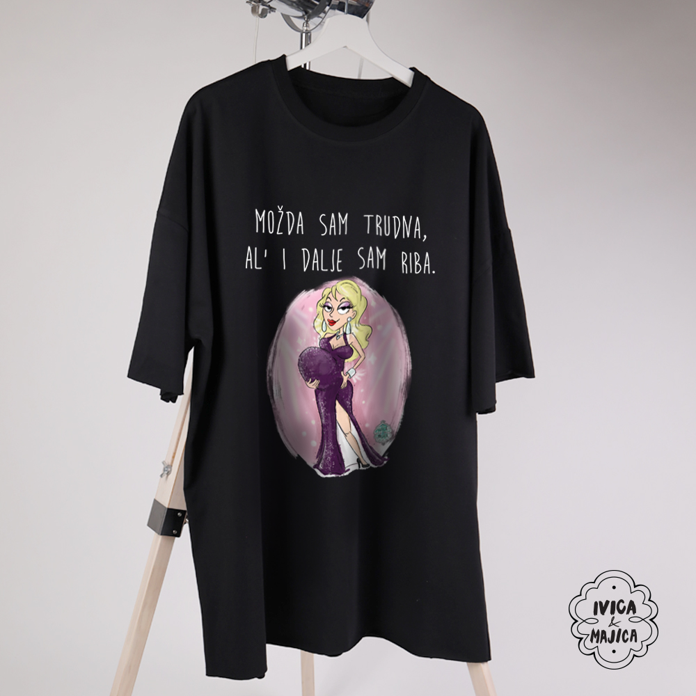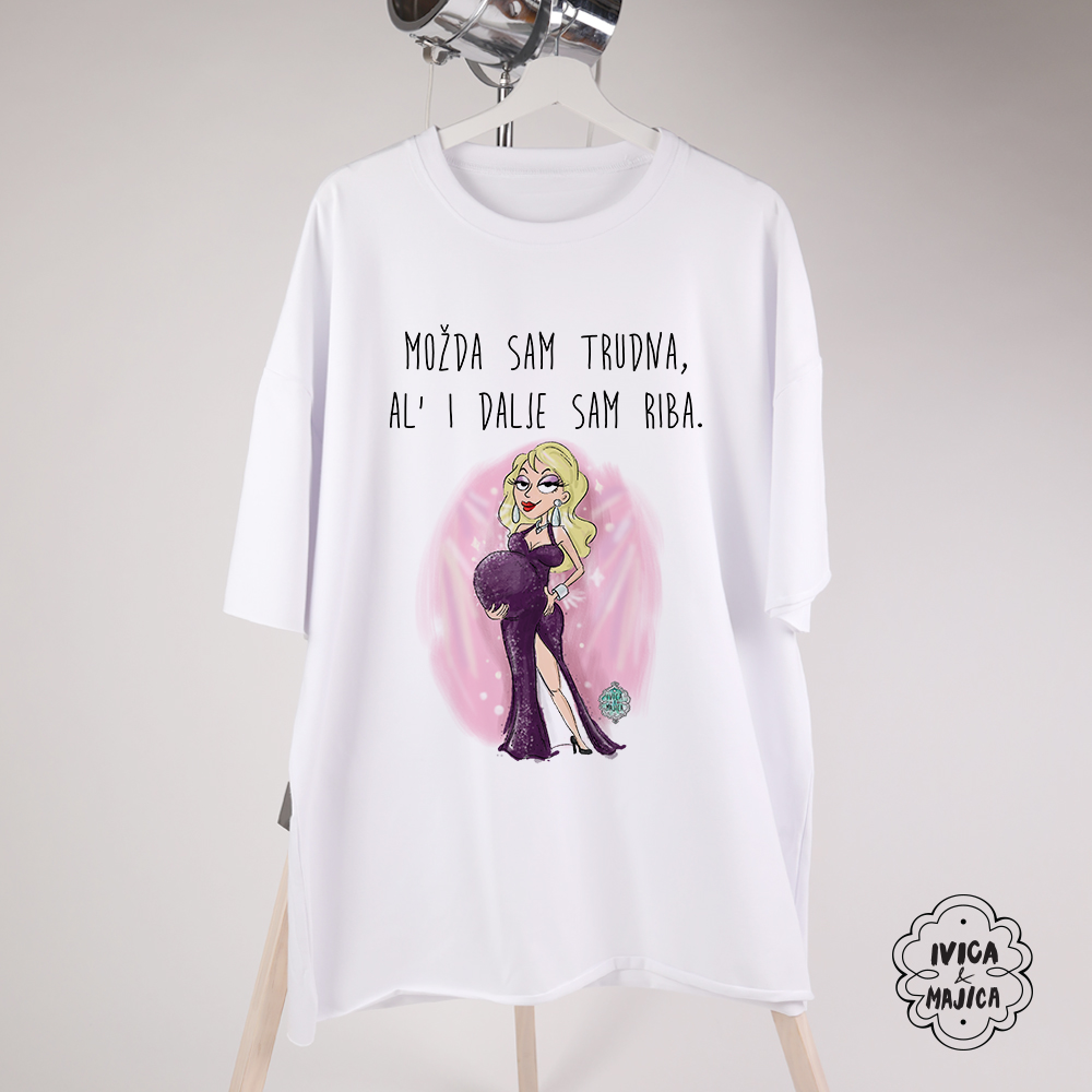 Možda sam trudna ali idalje sam riba - Ženska oversize majica