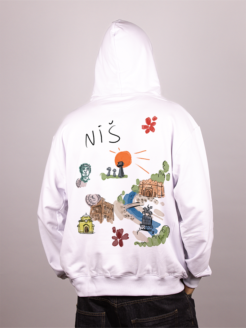 Muški duks “Niš” od mekanog pamuka spaja udobnost, jednostavan dizajn i prepoznatljiv gradski duh. Savršen za svakodnevno nošenje, bilo da si u pokretu ili na opuštenoj kafi u kraju.