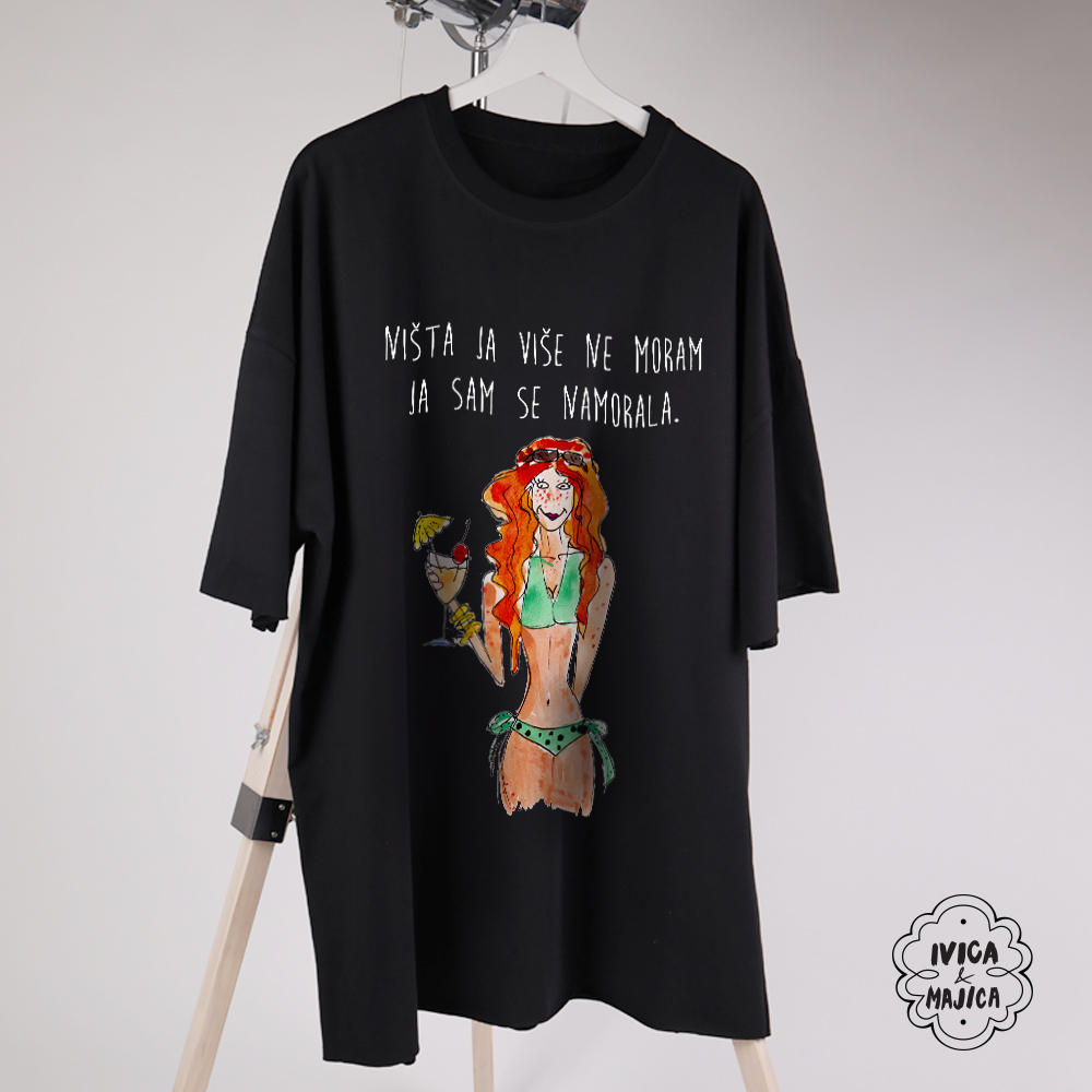 Ženska oversize majica “Ništa ja više ne moram” od mekanog pamuka donosi udobnost i slobodu, jer mir počinje kad izbrišeš “moram” iz rečnika.