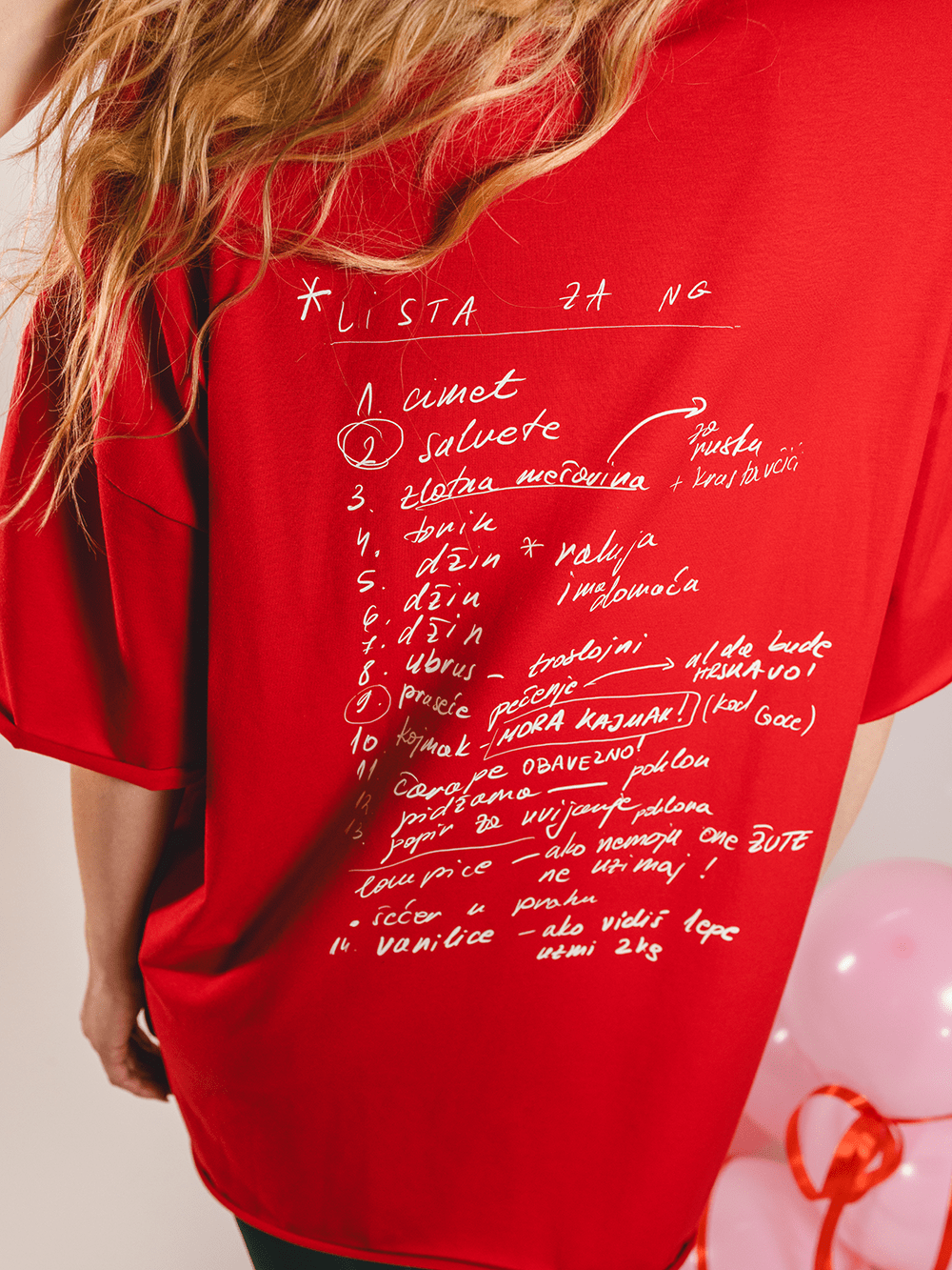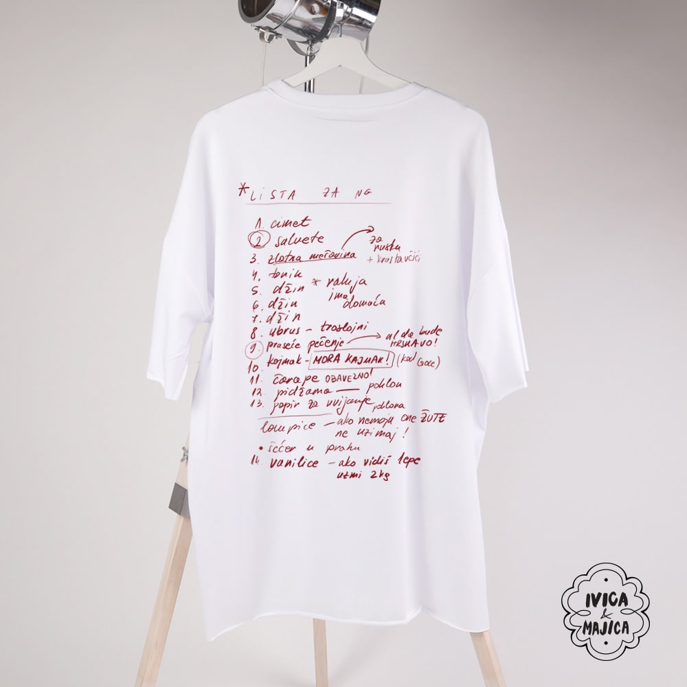 Ženska oversize majica “Novogodišnja lista” od mekanog pamuka spaja praznični duh, humor i komfor koji traje i posle praznika. Za žene koje znaju da su dobre cele godine (uglavnom).