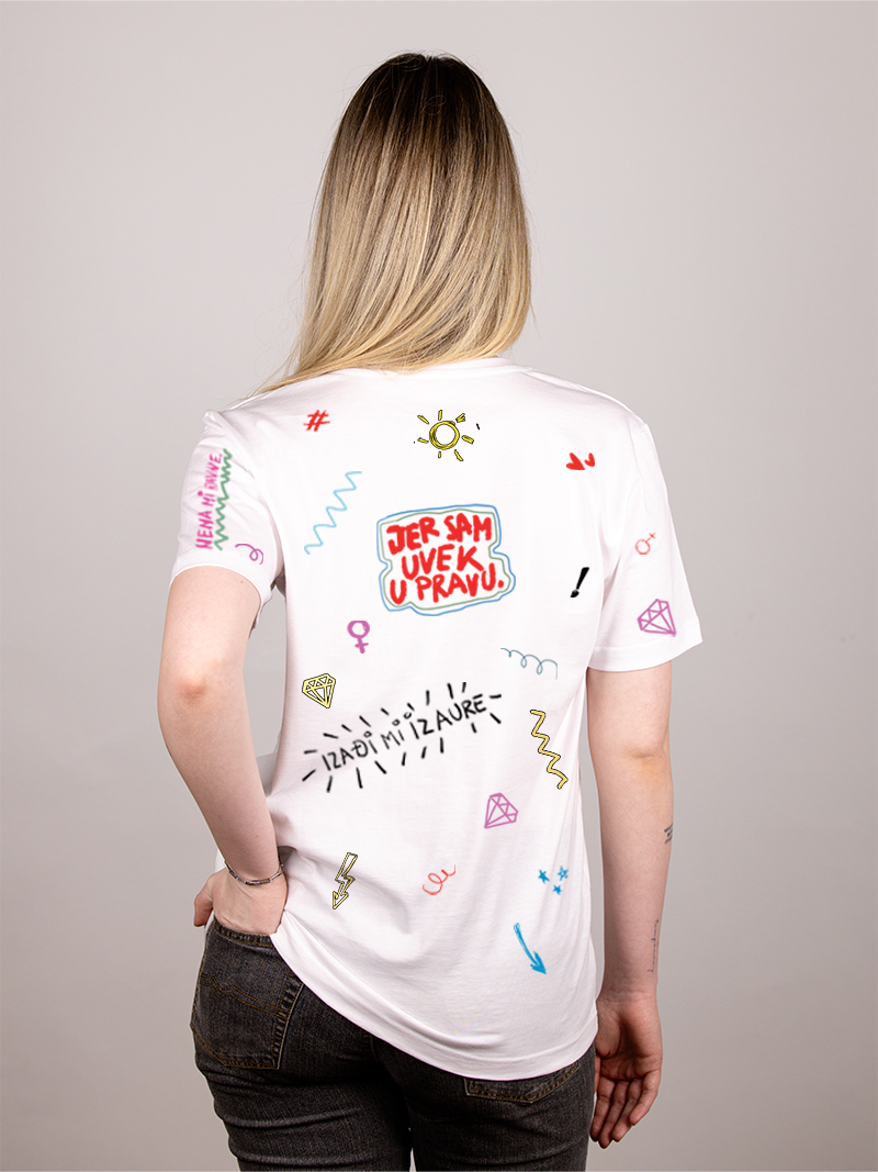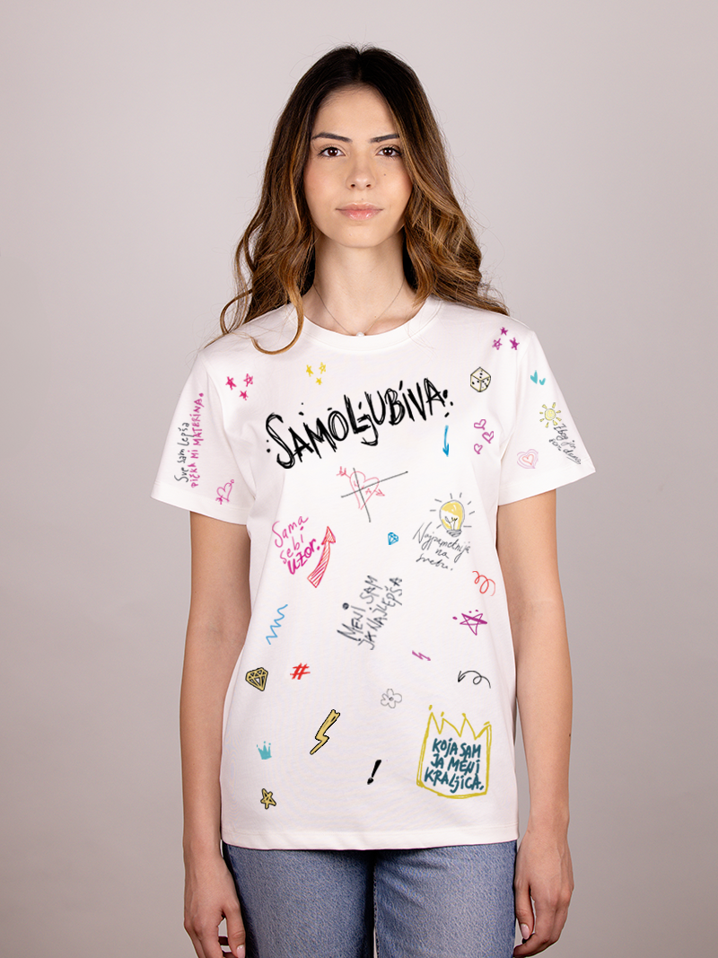 Ženska majica “Samoljubiva” od 100% pamuka donosi jednostavan kroj, udobnost i poruku samopouzdanja. Za žene koje znaju koliko vrede i to nose sa osmehom.