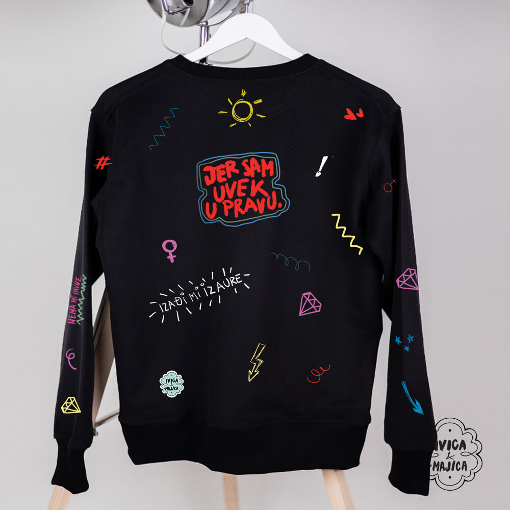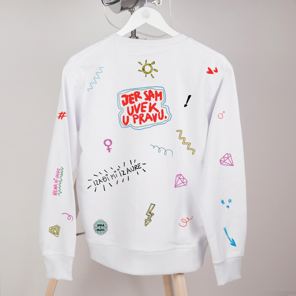 Ženski modeli se rade u veličinama od S do 2XL, osim oversize modela i crop topa koji se radi u jednoj univerzalnoj veličini. Muške modele izrađujemo u veličinama od S do 3XL. Dečiji bodići se rade u veličinama 62, 68, 74, 80, 86, 92, a dečije majice kratkih rukava i duksevi u veličinama 1, 2, 4, 6, 8, 10, 12, 14 (brojevi označavaju uzrast deteta).