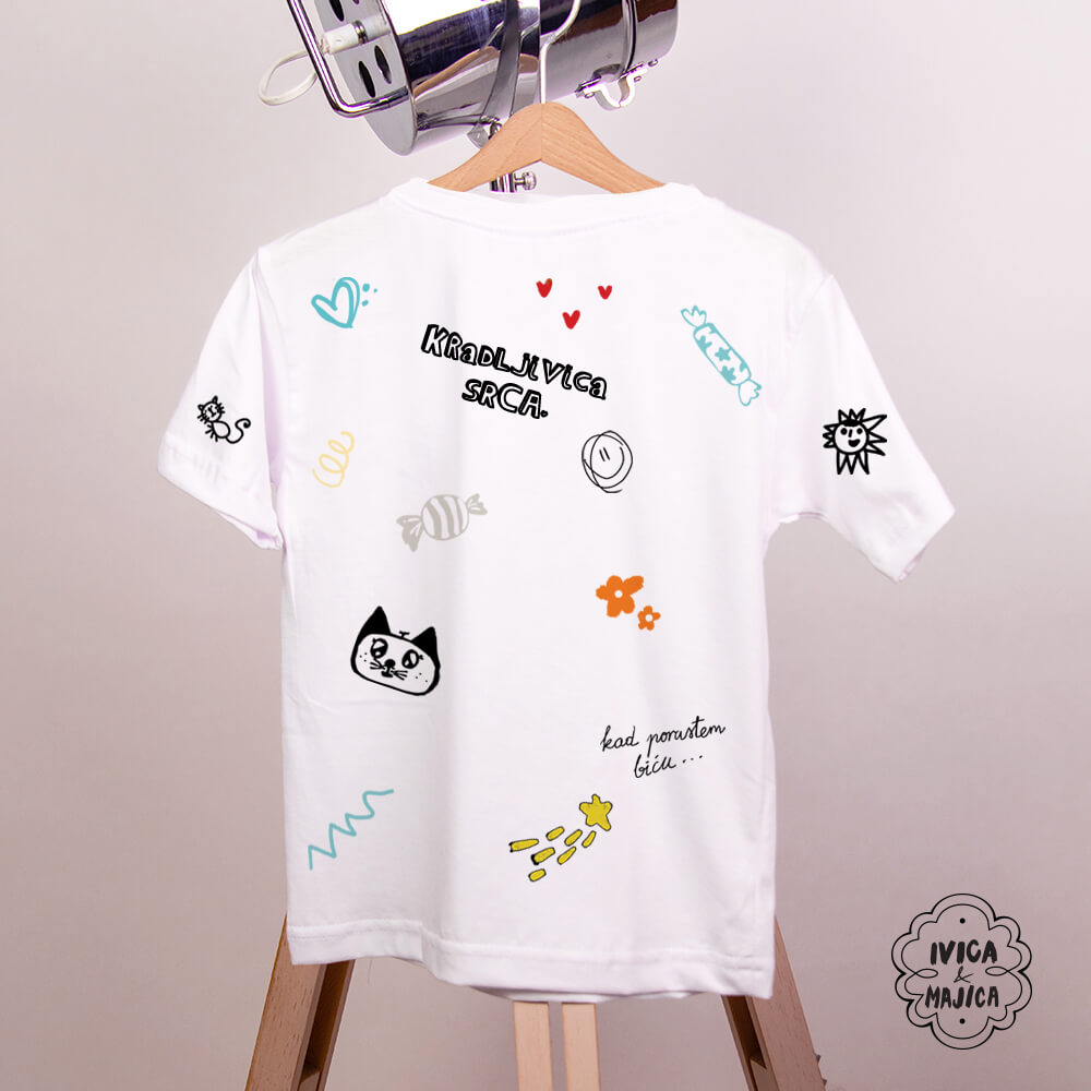 Ženski modeli se rade u veličinama od S do 2XL, osim oversize modela i crop topa koji se radi u jednoj univerzalnoj veličini. Muške modele izrađujemo u veličinama od S do 3XL. Dečiji bodići se rade u veličinama 62, 68, 74, 80, 86, 92, a dečije majice kratkih rukava i duksevi u veličinama 1, 2, 4, 6, 8, 10, 12, 14 (brojevi označavaju uzrast deteta).