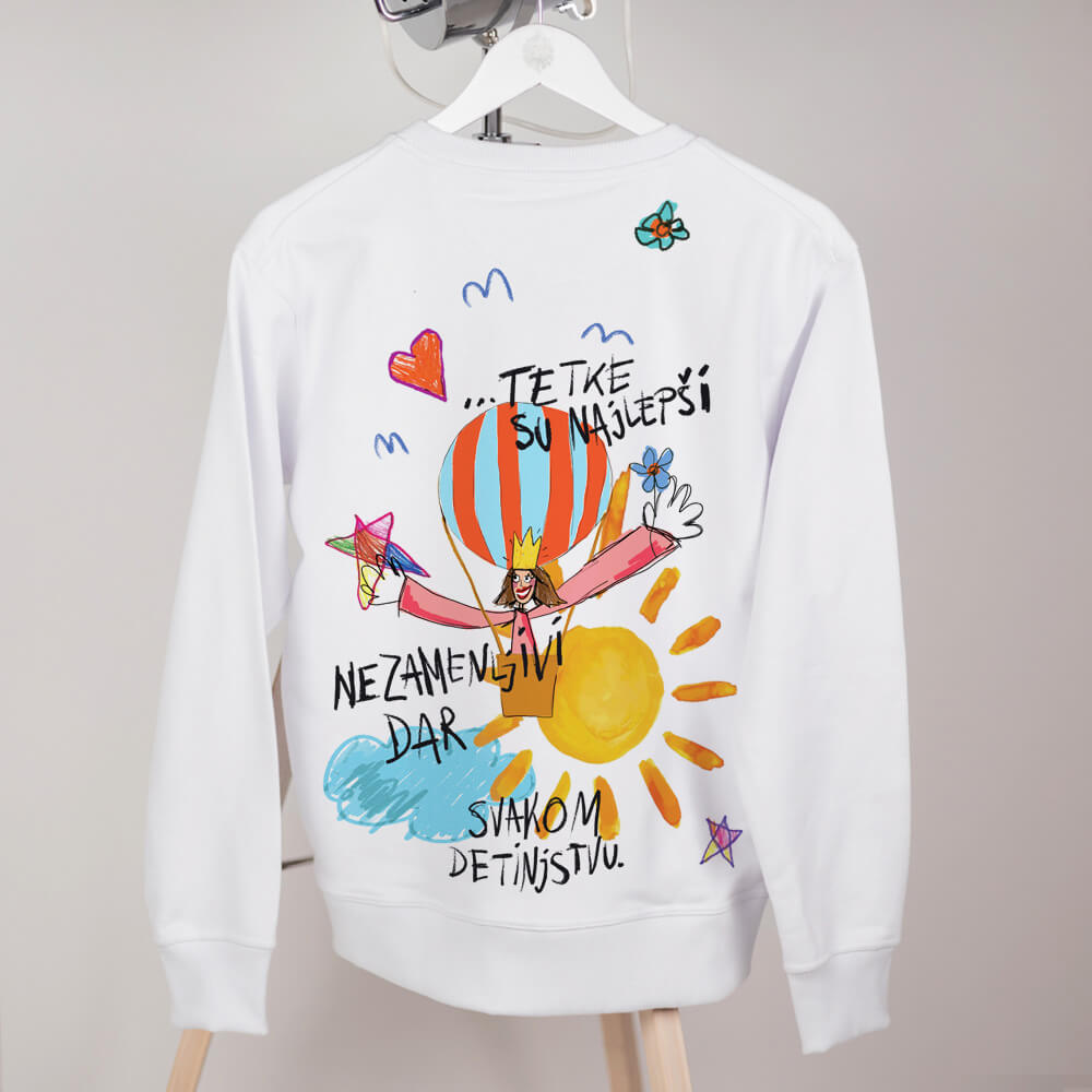 Ženski modeli se rade u veličinama od S do 2XL, osim oversize modela i crop topa koji se radi u jednoj univerzalnoj veličini. Muške modele izrađujemo u veličinama od S do 3XL. Dečiji bodići se rade u veličinama 62, 68, 74, 80, 86, 92, a dečije majice kratkih rukava i duksevi u veličinama 1, 2, 4, 6, 8, 10, 12, 14 (brojevi označavaju uzrast deteta).