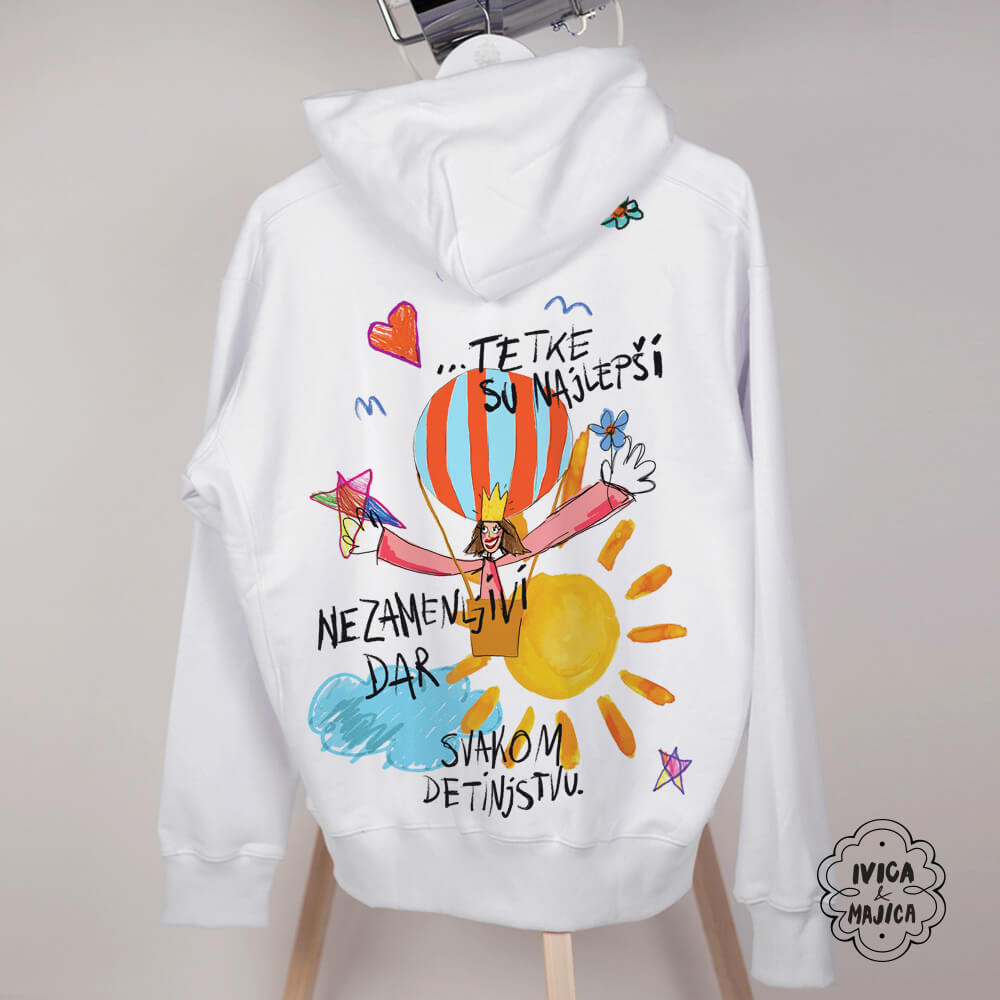 Ženski modeli se rade u veličinama od S do 2XL, osim oversize modela i crop topa koji se radi u jednoj univerzalnoj veličini. Muške modele izrađujemo u veličinama od S do 3XL. Dečiji bodići se rade u veličinama 62, 68, 74, 80, 86, 92, a dečije majice kratkih rukava i duksevi u veličinama 1, 2, 4, 6, 8, 10, 12, 14 (brojevi označavaju uzrast deteta).
