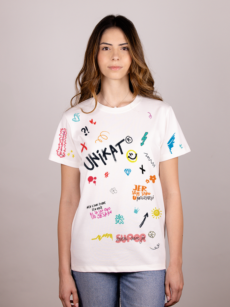 Ženska majica “Unikat” od 100% pamuka donosi udobnost i minimalizam sa porukom samopouzdanja. Savršena za žene koje znaju da budu autentične u svakom trenutku.