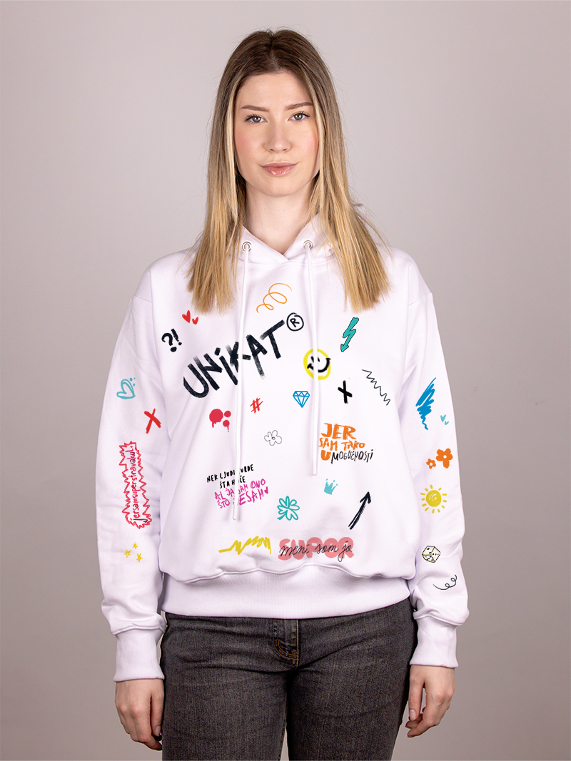 Ženski duks “Unikat” od mekanog pamuka spaja udobnost, minimalizam i poruku samouverenosti. Savršen za žene koje znaju da su jedinstvene i to nose s ponosom.