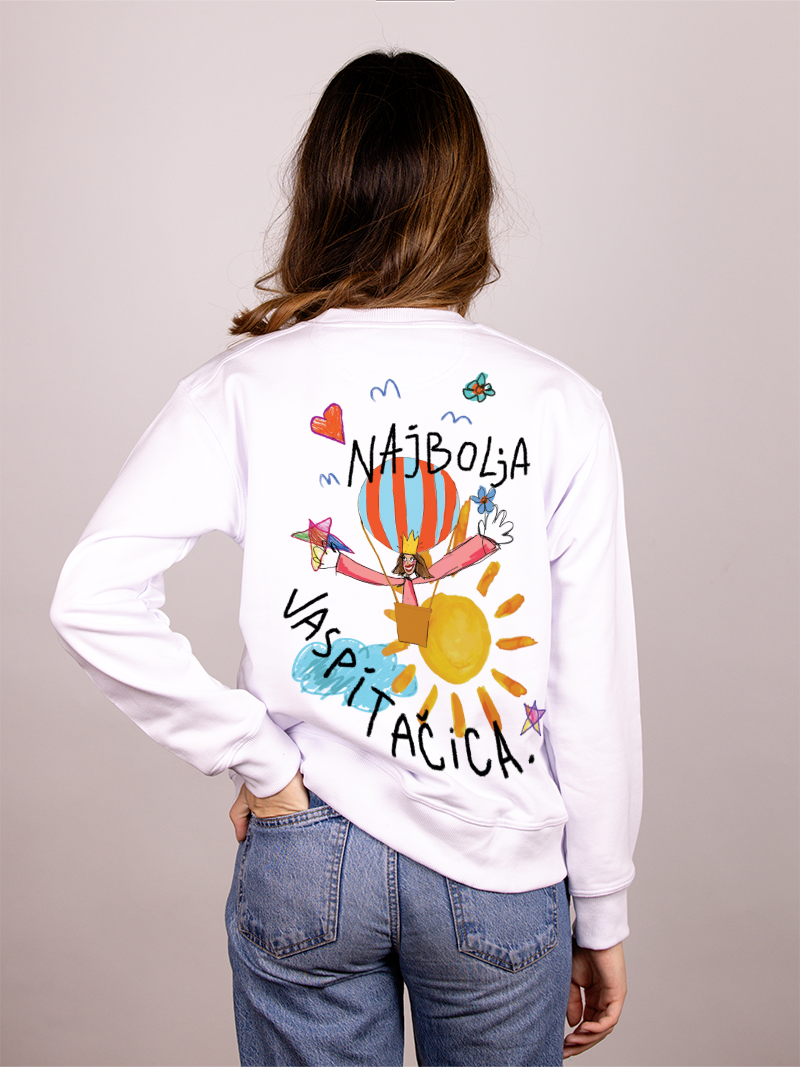 Ženski duks “Vaspitačica” od mekanog pamuka donosi toplotu, jednostavnost i šarm, baš kao i žene koje svakog dana čine svet lepšim. Savršen poklon (ili zasluženi poklon sebi).