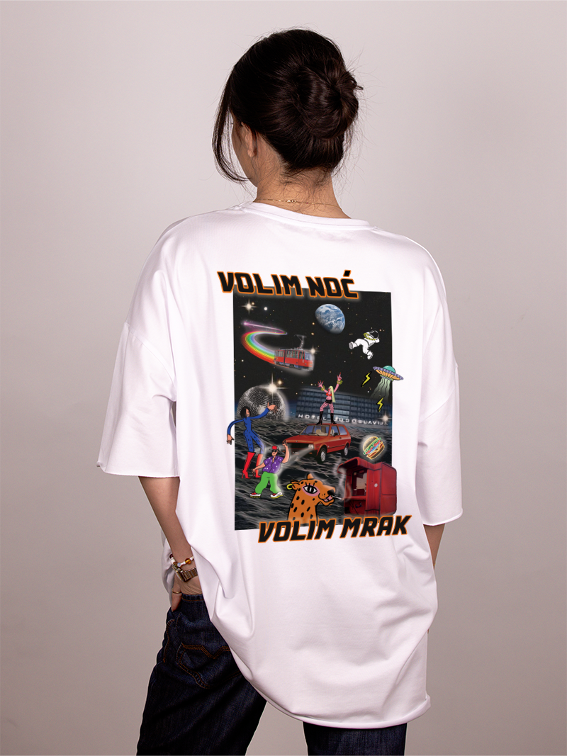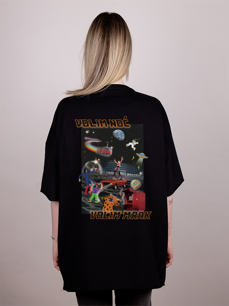 Ženska oversize majica “Volim noć, volim mrak” od mekanog pamuka spaja udobnost i minimalistički dizajn sa mračnim šarmom. Savršena za opuštene večeri i mirne dane kad ti treba samo, tvoj prostor.