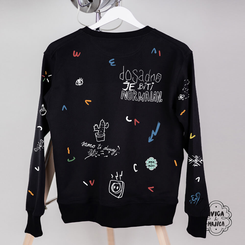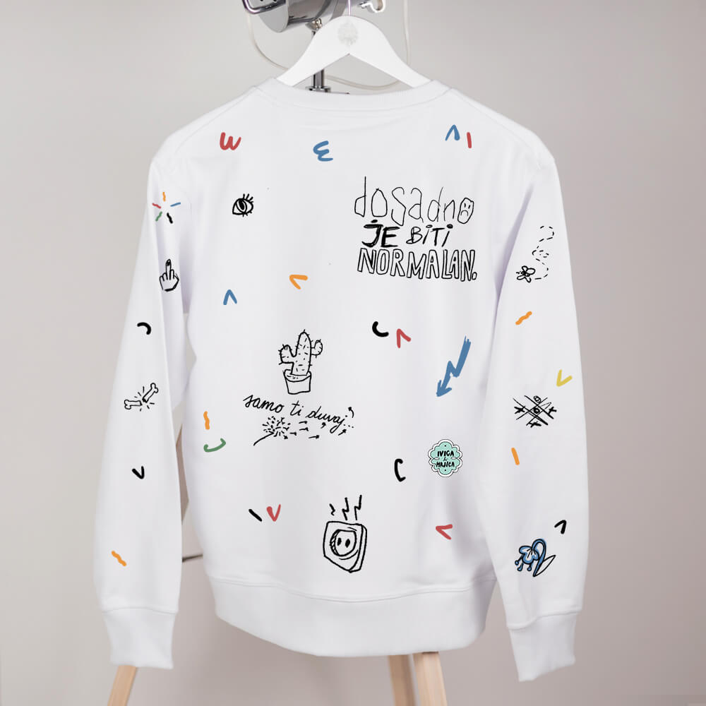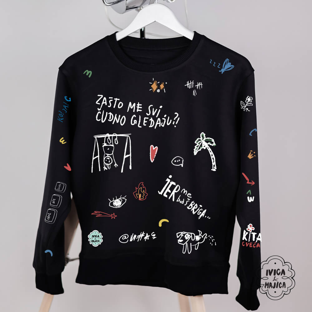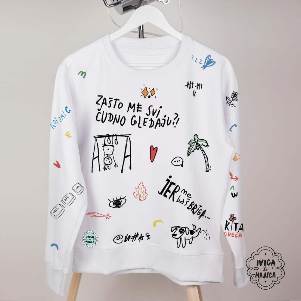 Ženski modeli se rade u veličinama od S do 2XL, osim oversize modela i crop topa koji se radi u jednoj univerzalnoj veličini. Muške modele izrađujemo u veličinama od S do 3XL. Dečiji bodići se rade u veličinama 62, 68, 74, 80, 86, 92, a dečije majice kratkih rukava i duksevi u veličinama 1, 2, 4, 6, 8, 10, 12, 14 (brojevi označavaju uzrast deteta).